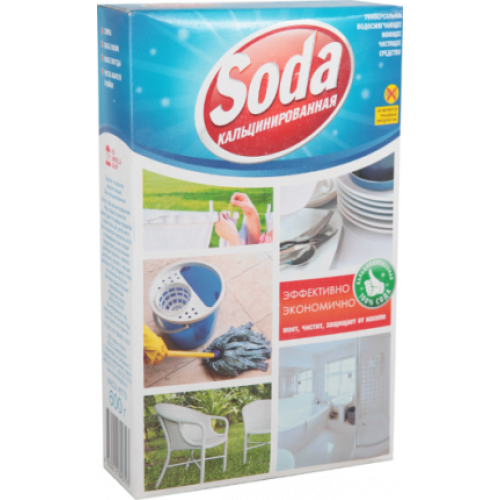 Кальцинированная сода предназначена для чистки различных твердых поверхностей, удаления жира. Подходит для мытья сантехники, кафельной плитки, фарфоровой и эмалированной посуды. Служит также для уменьшения жесткости воды при стирке, кипячении тканей. Расфасована в картонные упаковки по 600 гр.
