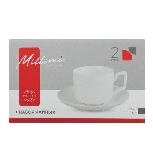 Набор чайный из 2-х предметов, объём чашек 240 мл, тм MILLIMI, «Белый» — это элегантный и универсальный чайный сервиз, идеально подходящий для повседневного чаепития