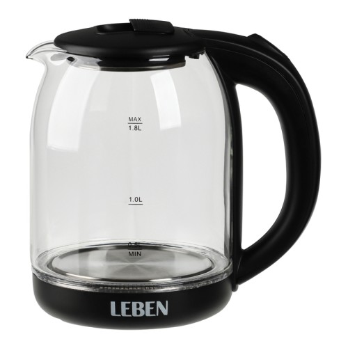 Электрический чайник объёмом 1,8 л и мощностью 1500 Вт — практичное решение для кухни, сочетающее современный дизайн и надёжную функциональность. Лаконичный чёрный корпус выполнен из комбинации термостойкого стекла и качественного пластика, что придаёт прибору стильный внешний вид и обеспечивает долговечность эксплуатации. Прозрачная стеклянная часть позволяет легко контролировать уровень воды, а эргономичная пластиковая рукоятка обеспечивает удобный и безопасный захват.