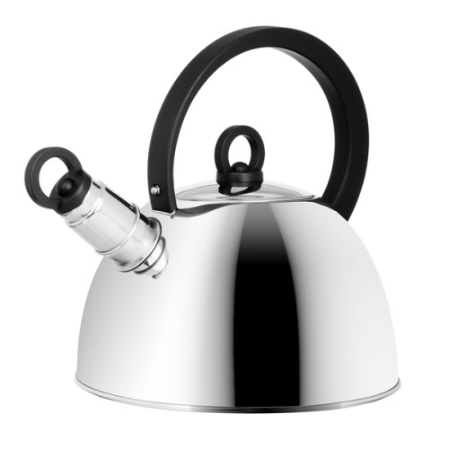 Стальной чайник «Кампо» со свистком объемом 2,5 л из нержавеющей стали займет достойное место на современной кухне. Имеет классический дизайн с глянцевой обработкой поверхности и ненагревающейся бакелитовой ручкой. Быстро нагревает воду благодаря высокой теплопроводности нержавеющей стали и оптимальному объему. Прочный корпус устойчив к коррозии и деформации. Правильная форма носика исключает брызги и попадание воды мимо чашки.