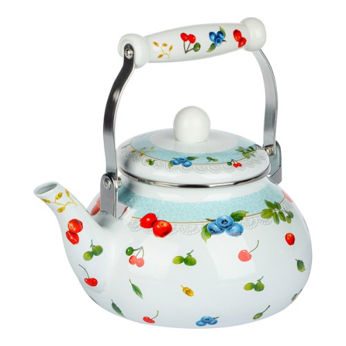 Эмалированный чайник VETTA «Прованс» объемом 2,5 л имеет привлекательный самобытный дизайн и станет настоящим украшением уютного чаепития в кругу семьи и друзей, а также дополнит интерьер кухни. Экологичная эмаль не вступает в контакт с водой и не влияет на ее вкус. Благодаря герметичной крышке и толстым стенкам вода долго не остывает после закипания. Специальная ручка комфортно ложится в руку и не нагревается. Чайник подходит для всех типов плит, включая индукционные.