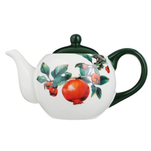 Керамический заварочный чайник MILLIMI Гранат объемом 900 мл сразу обращает на себя внимание ярким дизайном с изображением сочных гранатов на белом фоне. Займет достойное место на повседневном или праздничном столе. Природные тона в дизайне посуды будут уместно смотреться в интерьере любой кухни. Чайник выполнен из высококачественной прочной керамики, не подвержен сколам и царапинам и сохраняет первоначальный вид на протяжении всего срока эксплуатации.