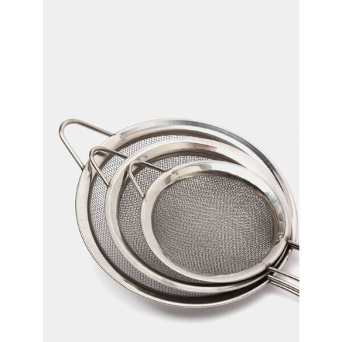 Набор состоит из 3-х ситечек размерами 8, 10, 12 см. Набор предназначен для процеживания различных напитков и жидкой пищи.