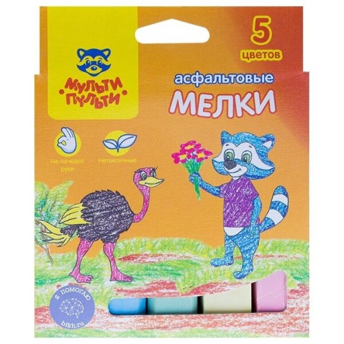 Мел Мульти-Пульти изготовлен из натуральных компонентов и идеально подходит для рисования на любой шероховатой поверхности. Нетоксичные. Для детей старше 3-х лет.