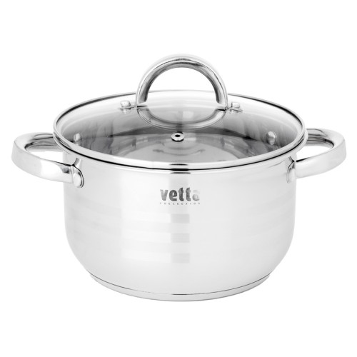 Кастрюля VETTA Фултон объемом 2,1 л и размером 18х10,5 см станет вашим надежным помощником на кухне. Изготовленная из нержавеющей стали, она устойчива к коррозии, долговечна и легко очищается. Капсульное дно с теплораспределительным слоем обеспечивает равномерный нагрев и позволяет использовать кастрюлю на всех типах плит, включая индукционные.