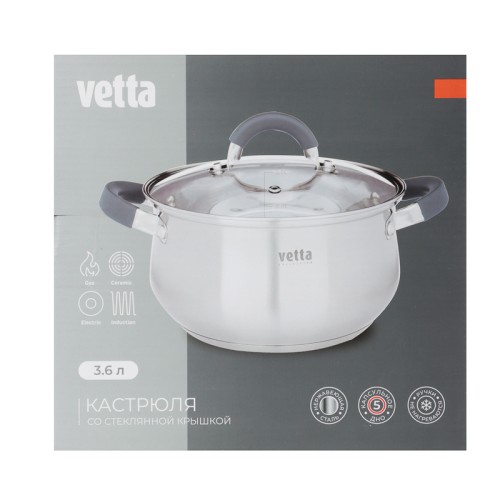 Идеальная помощница на кухне – кастрюля VETTA "Вена" объемом 3,6 л, диаметром 20 см и высотой 11,5 см станет незаменимой для приготовления любимых блюд. Кастрюля оснащена удобной стеклянной крышкой с пароотводом, позволяющей контролировать процесс готовки, не поднимая крышку. Индукционное капсульное дно обеспечивает быстрый и равномерный нагрев на любых типах плит, включая индукционные.