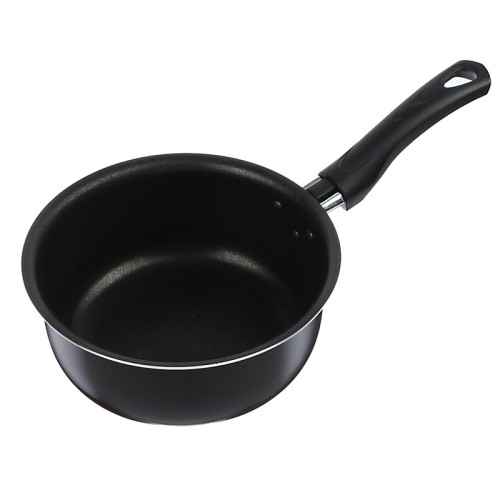 Ковш объемом 1,2 л с антипригарным покрытием предназначен для варки яиц, каш, приготовления соусов. Изготовлен из алюминия, что способствует равномерному приготовлению блюд. Антипригарное покрытие позволяет готовить без добавления жиров и масел, отличается износостойкостью и безопасно для здоровья человека. Ручка не нагревается, имеет удобную форму и оснащена отверстием для подвеса. Не подходит для индукционной плиты.