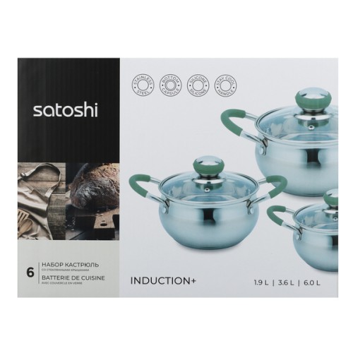 Набор кастрюль Satoshi Марли создан для тех, кто думает о качестве питания, но не забывает про экономию. Посмотрите, какой ансамбль — 3 емкости разного объема — 1,9, 3,6 и 6 литров. Обратите внимание — единый дизайн и все необходимые на кухне размеры. Готовьте первые и вторые блюда, соусы, десерты и сезонные заготовки. Кастрюля на 6 л — идеальное решение для приготовления супа на всю семью. 3,6 л — отличный выбор на каждый день для макарон и каш. Изделие 1,9 л — подходит для приготовления маленьких порций.