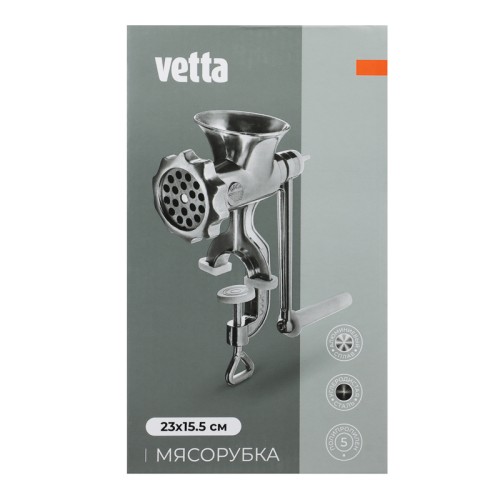 Мясорубка из алюминиевого сплава VETTA – это классическая механическая мясорубка с фиксацией на столе. Имеет прочную металлическую разборную конструкцию. Подходит для приготовления мясного и рыбного фарша, а также для измельчения любых других продуктов: лука, картофеля и т.д., как сырых, так и в отварном виде. Фиксаторы оснащены накладками, которые защищают стол от появления царапин и вмятин. Длинная рукоять комфортно вращается, обеспечивая оптимальную скорость измельчения.