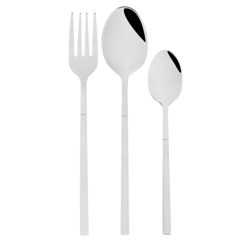 Набор столовых приборов SATOSHI «Ферре» из 18 предметов сочетает в себе современный стиль и классическую сдержанность. Рассчитан на 6 персон и содержит 6 столовых ложек, 6 вилок и 6 чайных ложек. Столовые приборы серебряного цвета смотрятся элегантно и лаконично, а глянцевая поверхность и утонченная форма добавляют особого шарма и выразительности сервировке. Все предметы изготовлены из качественной нержавеющей стали, устойчивой к коррозии, царапинам и деформации. Беспроигрышный выбор для повседневного использования, торжественных приемов, подарка на новоселье