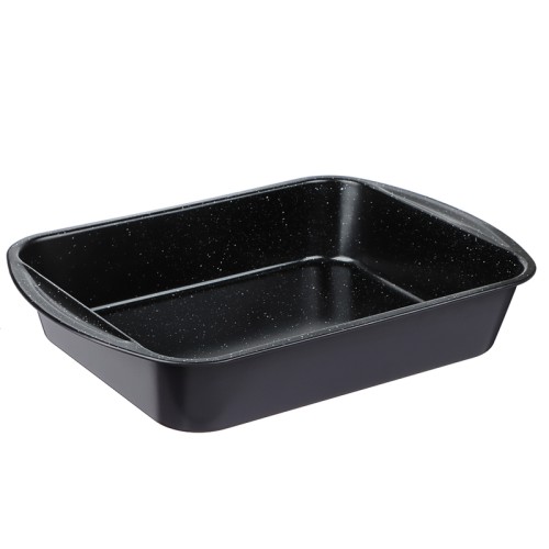Противень глубокий для выпечки изготовлен из углеродистой стали, с 2-х слойным высокопрочным антипригарным покрытием, которое выдерживает температуру 280 градусов. Подходит для использования в духовых шкафах.