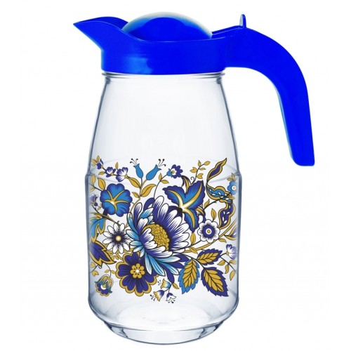 Кувшин с деколью "Милори", из абсолютно прозрачного стекла имеет цилиндрическую формы, зауженную в верхней части . Съёмная крышка из пищевого пластика может быть четырёх цветов: красная, жёлтая, синяя и зелёная.Крышка легко снимается поворотом против часовой стрелки и кувшин отлично вымывается от остатков напитка. Форма носика позволяет разливать напитки аккуратно, откидывающаяся крышка закрывает содержимое кувшина, а удобная ручка хорошо ложиться в руку. В кувшине можно подавать воду и холодные напитки: молоко, фруктовый сок, компоты, морсы, которые прекрасно сохранят свои качества.