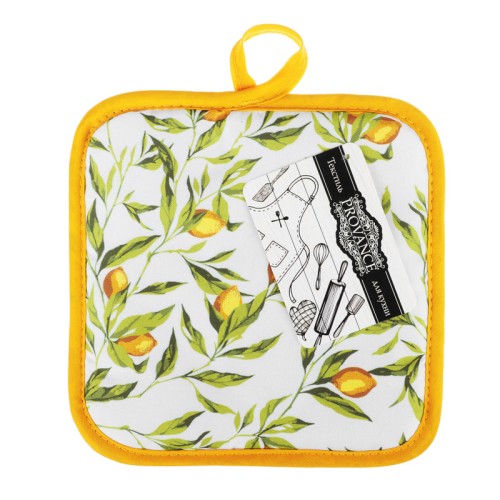 Прихватка PROVANCE Лимонный курд - незаменимый помощник на любой кухне. Изделие выполнено из прочного материала и оформлено красочным принтом. Прихватка мягкая, удобная и практичная. Она защитит ваши руки и предотвратит появление ожогов.