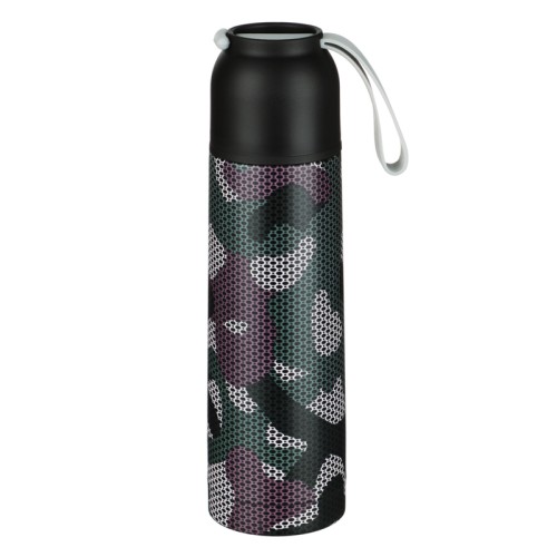 Термос SATOSHI "Камуфляж" объемом 500 мл будет сопровождать вас на прогулках и в поездках. Продуманная конструкция, эксклюзивный дизайн и качественные материалы делают процесс использования максимально приятным для пользователя. Термос выполнен из нержавеющей стали и имеет двойные стенки корпуса, что снижает теплопотери и сохраняет температуру напитка в течение нескольких часов в любую погоду. На крышке термоса имеется специальная петля для его удобной переноски.