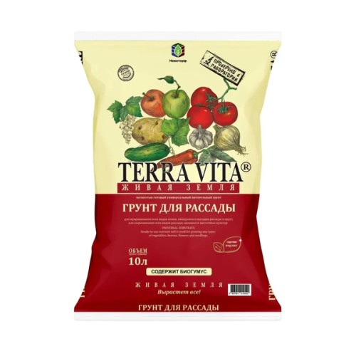 СОСТАВ: изготовлен на основе торфов различной степени разложения с добавлением органических субстратов, природных структурирующих компонентов, макро- и микроэлементов. Азот- 180 мг/л, Фосфор (P2O5)- 300 мг/л, Калий (K2O)-350 мг/л._x000D_ КИСЛОТНОСТЬ: pH солевой суспензии- 5,8-7,0._x000D_ ПРИМЕНЕНИЕ/НОРМА ВНСЕНИЯ: Полностью готовый питательный грунт Терра Вита (Живая Земля Специальный №1) применяется для выращивания рассады томатов, перцев и баклажанов._x000D_ Улучшает всхожесть семян, приживаемость рассады, повышает урожайность и качество овощей и плодов._x000D_ СРОК ГОДНОСТИ: 3 года. Комплектация 5 упаковок