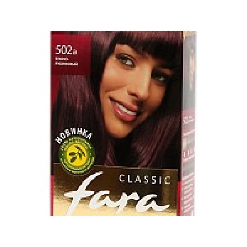 Краска для волос FARA (Фара) Classic 502а - Темно-рубиновый, гарантирует 100% закрашивание седины, стойкий, сияющий яркий цвет,имеет мягкую текстуру, поэтому распределяется равномерно по длине всего волоса и совершенно не стекает. Имеет удобный флакон с аппликатором, без резкого запаха, не вызывает жжения кожи головы.