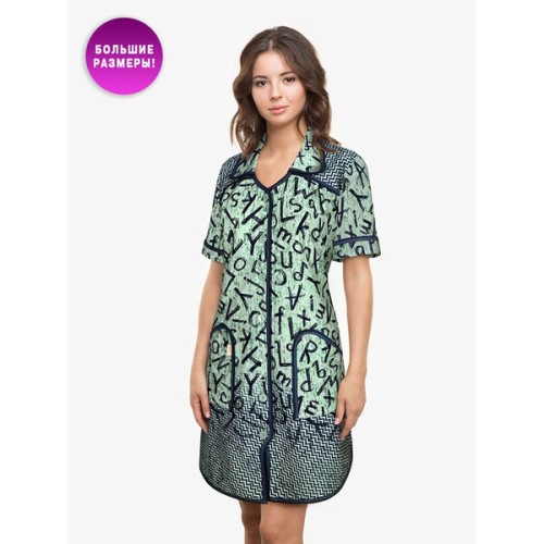 Стильный молодежный халат - рубашка на пуговицах. Модель средней длинны свободного силуэта с короткими рукавами и удобными накладными карманами. Горловина халата оформлена отложным воротничком, детали оформлены узкой однотонной окантовкой в тон основного полотна и украшены декоративными пуговицами/